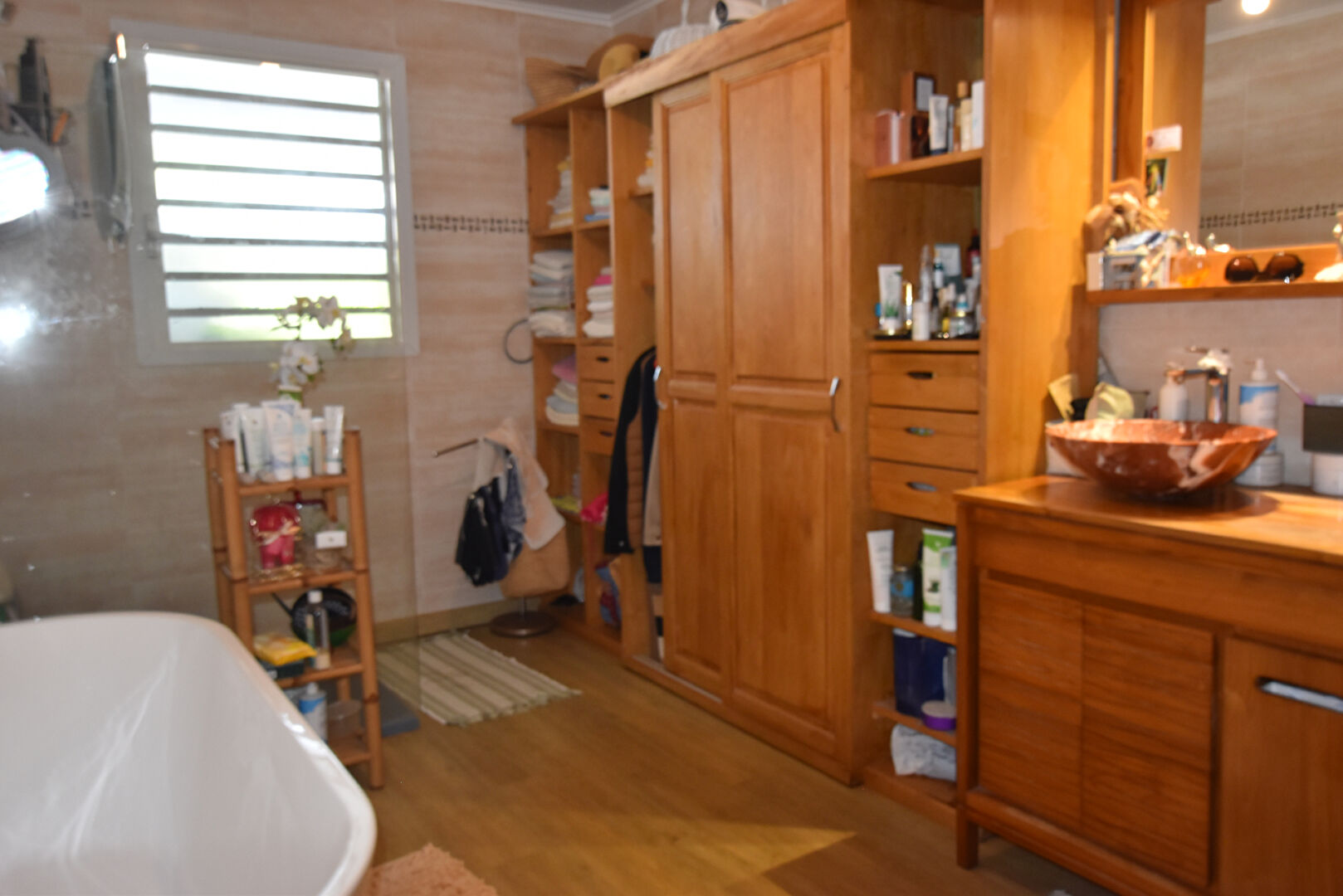 Implantée sur une parcelle de 406 m2, cette villa à étage est une pépite de première ligne bénéficiant d'une ambiance de choix verdoyante et mature. Au niveau principal, directement relié à une immense varangue, vous serez séduit par un salon-séjour spacieux et lumineux, ouvert sur une cuisine entièrement équipée avec des prestations de qualité. Le séjour s'allonge sur un long couloir donnant sur une chambre actuellement utilisée comme bureau. Une deuxième chambre s'ouvre sur un espace de vie indépendant, comprenant séjour et cuisine parfaite pour un projet locatif ou bi-générationnel ou encore garantissant confort et intimité à chacun. Doté d'un spacieux hall d'entrée, l'arrière de la maison s'ouvre sur le second espace de vie. Il dessert la salle de bain du rez-de-chaussée, l'escalier menant à l'étage et au garage. Équipée d'une baignoire, d'une douche à l'italienne et d'un double plan vasque en marbre, la salle de bain se distingue par son espace généreux et allie à la fois élégance et fonctionnalité. A l'étage, la suite parentale se distingue par une commode intégrée, un immense placard coulissant et sa salle d'eau attenante. S'ouvrant sur une seconde varangue avec vue mer sur le Bassin Pirogue, elle offre un espace privilégié alliant confort et intimité dans un cadre exceptionnel. Les multiples varangues et terrasses complètent ce bien rare alliant confort, intimité et emplacement d'exception. Griselde DELAHAYE (EI) Agent Commercial - Numéro RSAC : - .