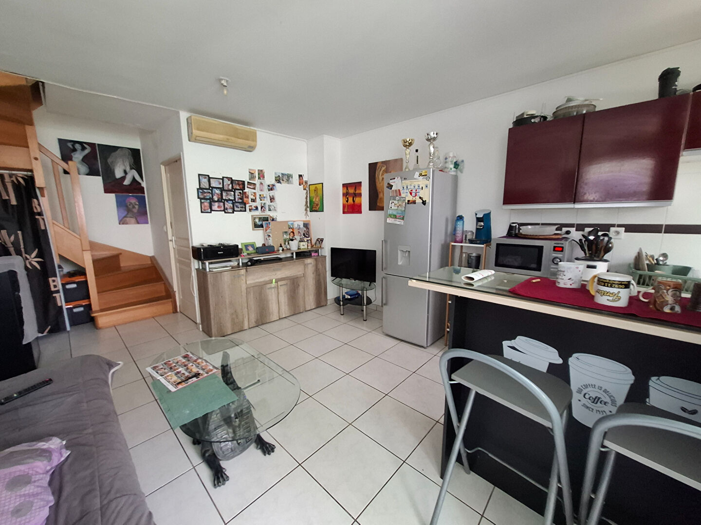 A Vendre Direct Immobilier, Votre agence du Tampon, vous propose à la vente en exclusivité un appartement duplex Type T2 d'environ 50 M2 de surface habitable et de 73,60 M2 environ de surface utile (jardin/ varangue et balcon) Niché au sein d'une résidence calme et sécurisée, construite en 2010 de 200 lots (habitations + stationnements) sur la commune de Saint Pierre - Ligne des Bambous Un logement composé au rez-de-chaussée d'un espace de vie avec cuisine semi équipée , d'une salle d'eau avec toilettes intégrés, d'un espace dégagement escalier. A l'étage une grande chambre avec placard intégré et balcon, une salle d'eau, des toilettes indépendants et un dégagement palier. Viennent compléter cet ensemble un jardinet, une varangue. Chambre et pièce de vie climatisées Résidence avec piscine Une place de parking couverte Actuellement loué 605 euros/mois bail classique 3 ans Bail en cours jusqu'à 05/2027 Taxe foncière : 1 539 euros/an Charges de copropriété: 74 euros/mois Copropriété de 200 lots - dont 100 lots habitation. (Pas de procédure en cours). Charges annuelles : 890 euros. Pascale MAGLOIRE (EI) Agent Commercial - Numéro RSAC : 2022AC00053 - ST PIERRE.