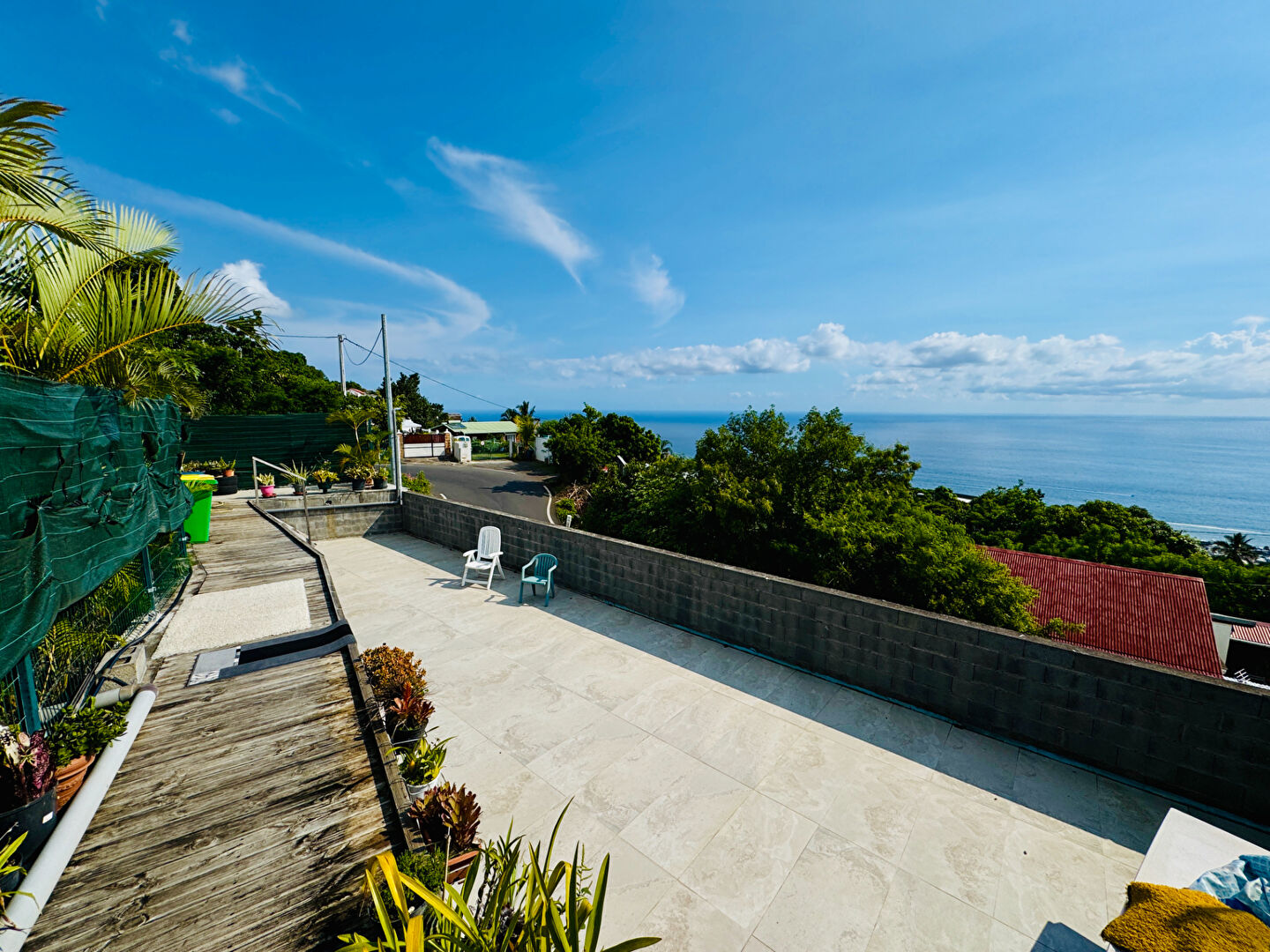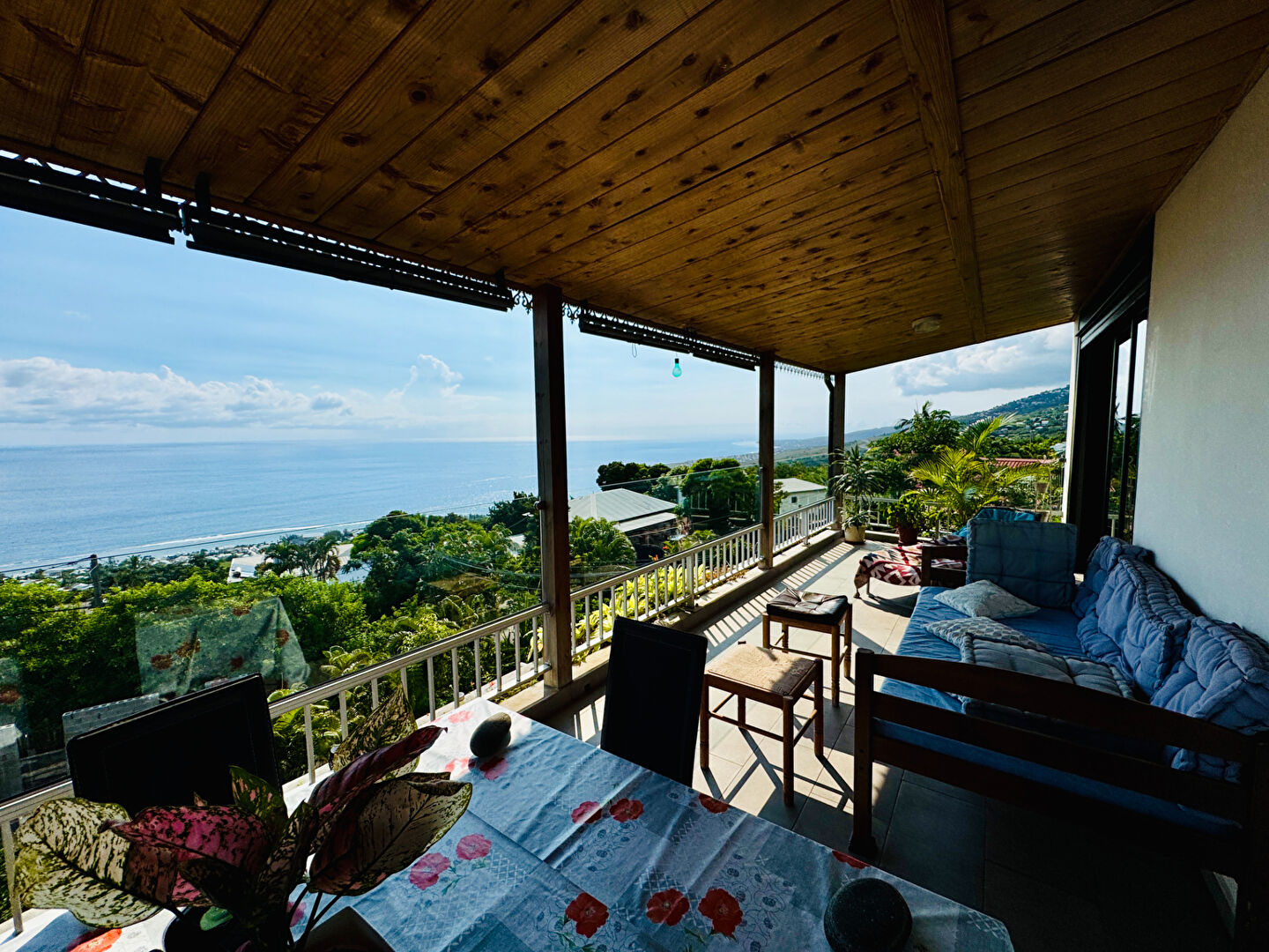 Direct Immobilier vous propose en exclusivité Chemin Dubuisson à St Leu : Situation exceptionnelle pour cette superbe villa Type 3 de 98 m2, et 95.52 m2 de surfaces utiles complémentaires à 10 minutes des plages de Saint Leu, altitude idéale 280 mètres Une vue panoramique à couper le souffle. Espace jour : 50.51 m2 très grande cuisine américaine, ouverte sur salon séjour, ... vue sur les baleines Espace nuit : une suite parentale, (chambre et salle de bains privative 25.61 M2) qui donne sur varangue ouest, vue panoramique une deuxième suite parentale avec salle d'eau (14 m2). Maison totalement de plain pied Garage : 31 m 2 première varangue d'accueil de 28 m2 , exposition à l' est, bel espace ombragé et paysagé. Une deuxième varangue de 36 m2. avec vue sublime sur océan, exceptionnel prolongement de l'espace jour. Un jardin en contrebas de la parcelle principale permettra l'installation d'une piscine, ou d'un jacuzzi Terrain : 705 m2 Assainissement : fosse septique Taxe foncière : 1521 euros