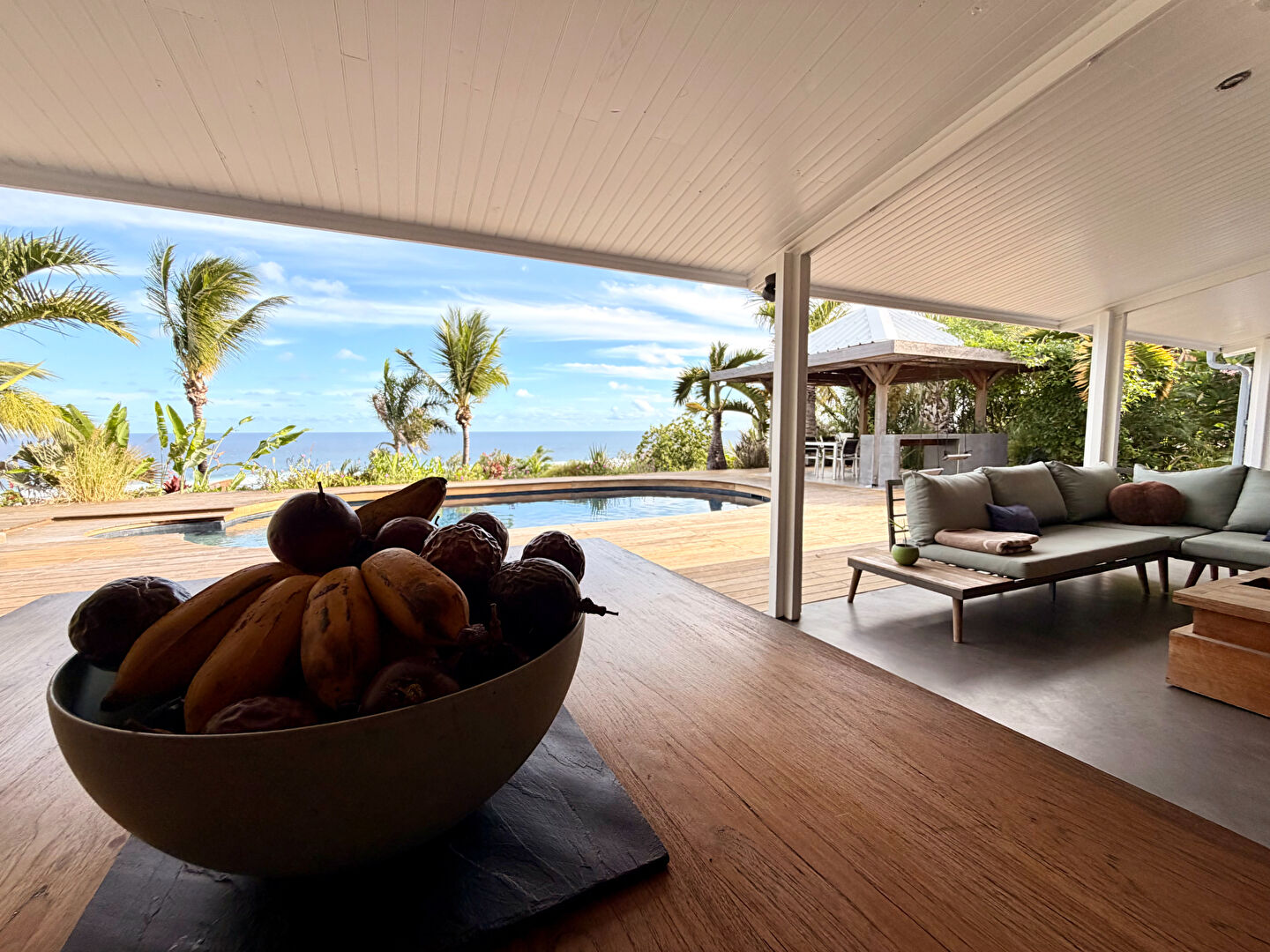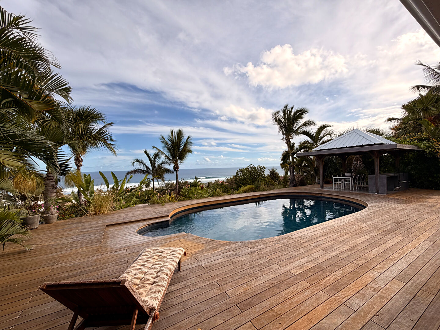 Direct immobilier vous propose une propriété d'exception avec vue mer incroyable. Dans un environnement privilégié , sur un terrain de 3000 m², découvrez cette propriété haut de gamme entièrement rénovée en 2021, offrant des prestations rares et une qualité de vie exceptionnelle. La villa principale: - environ 125 m² habitables, séduit dès l'entrée par ses volumes généreux et sa luminosité. Elle propose un vaste espace de vie ouvert, parfaitement pensé pour le confort et la convivialité. Côté nuit, vous trouverez deux superbes suites parentales, chacune avec un accès direct à la piscine, offrant intimité et bien-être au quotidien. A l'extérieur, une grande varangue prolonge les espaces de vie et invite à profiter pleinement du cadre tropical. A l'étage, une mezzanine aménagée en bureau et coin salon offre une vue mer imprenable, idéale pour allier travail et détente. Une dépendance indépendante Une seconde habitation d'environ 80 m² complète ce bien, composée de : Deux suites parentales Un espace de vie Parfait pour recevoir, louer ou créer un espace indépendant. Prestations écologiques et autonomie Installation photovoltaïque avec batteries Système de phytoépuration pour le traitement des eaux usées Un bien tourné vers l'avenir, alliant confort et respect de l'environnement. Extérieurs Implantée sur un terrain de 3000 m² constructible, cette propriété offre espace, intimité et potentiel, dans un cadre verdoyant et apaisant. Contactez nous pour plus d'informations.